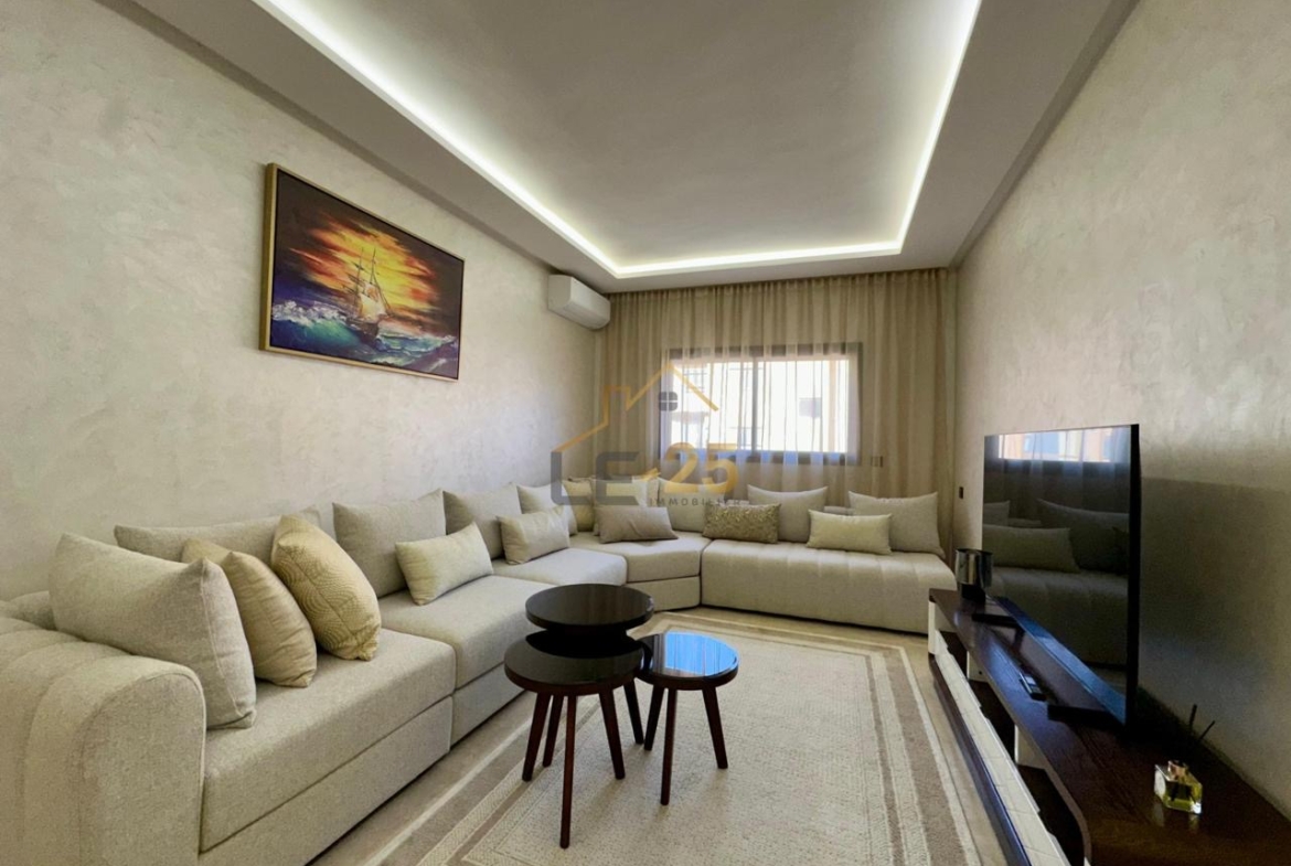 Le 25 Immobilier vous présente ce superbe appartement meublé , d’une superficie généreuse de 113 m², idéalement situé à seulement 5 minutes du centre de Guéliz, dans une résidence calme, sécurisée et bien entretenue.
