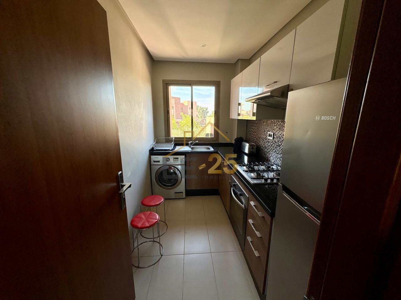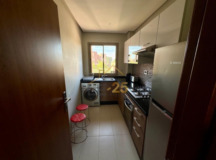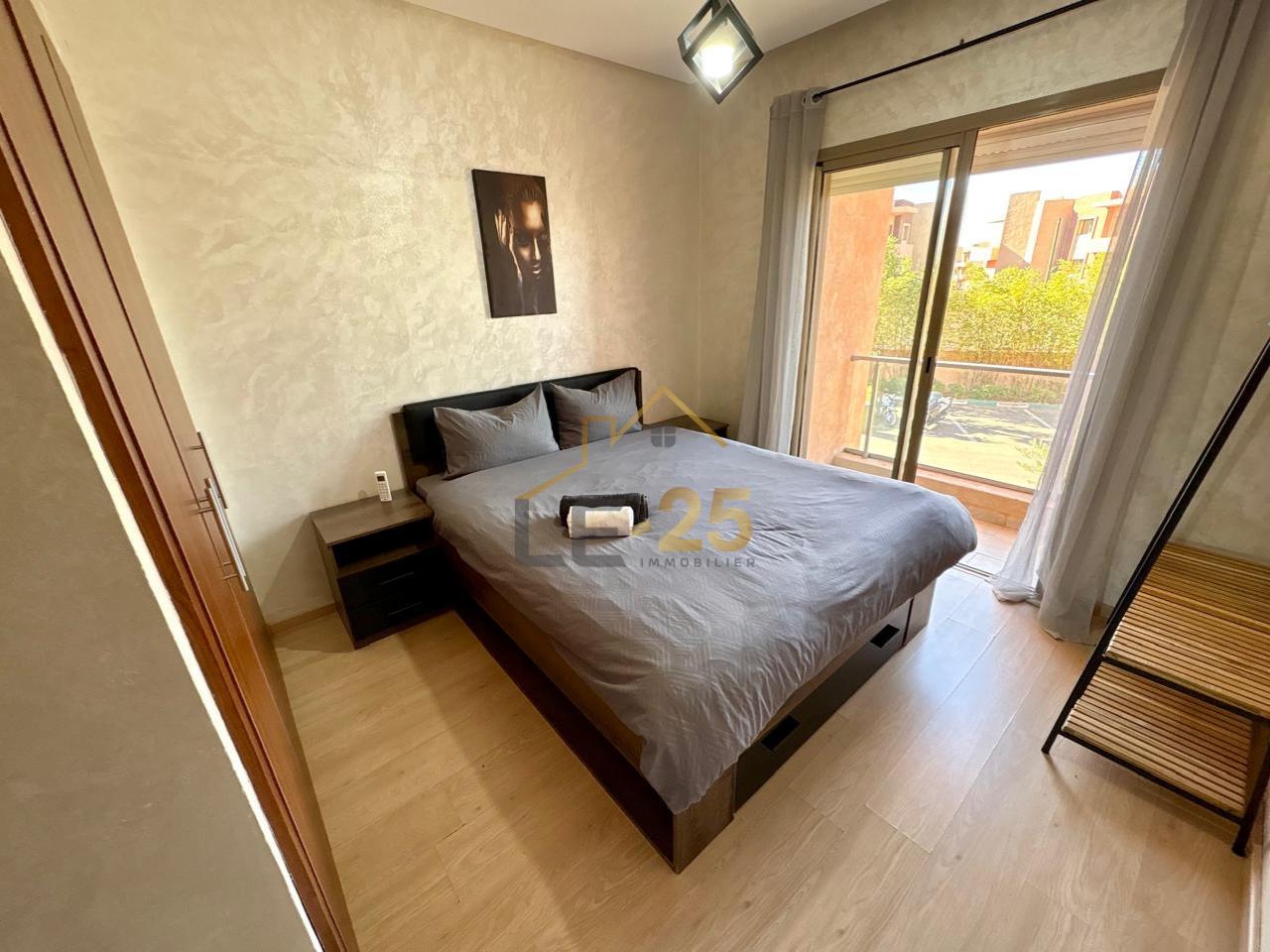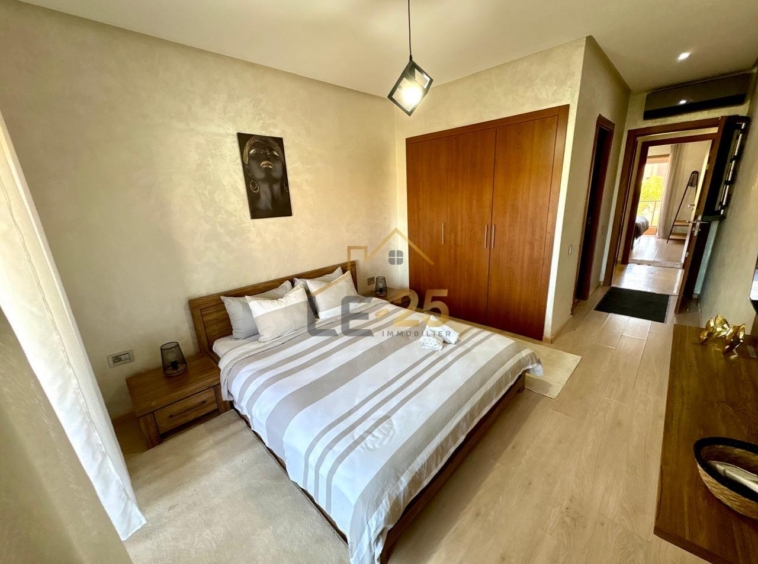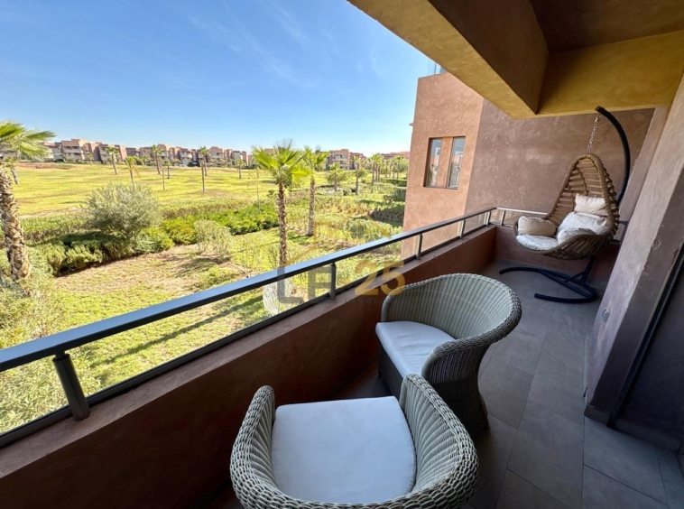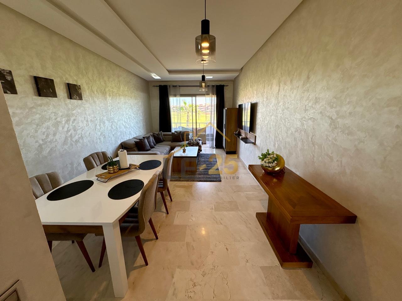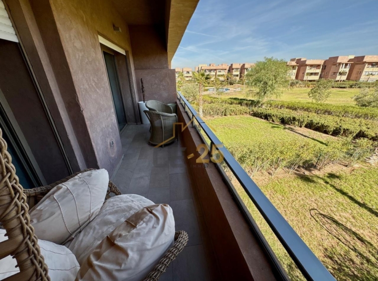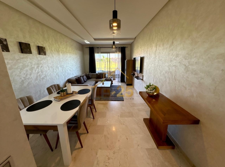 Le 25 immobilier met à votre disposition ce joli appartement pour la location à la journée situé dans la fameuse résidence golfique Prestigia, il est d’une superficie de 80m2 plus terrasse avec vue sur la piscine et le golf. Il se compose d’un lumineux salon avec accès à la terrasse, deux chambres dont une suite parentale également avec accès à la terrasse et salle de bain privative, la deuxième chambre dispose aussi d’un grand lit double placard et balcon, une deuxième salle de bain et une cuisine entièrement équipée. Climatisation dans toutes les pièces, plus un matelas extra. L’appartement est de 5min de l’aéroport, 5min de Menara Mall, 5min du M avenue mall, et 8min de jamaa el ana. Vous disposez aussi des restaurant dans la résidences de Prestigia avec une vue imprenable et panoramique sur le golf.