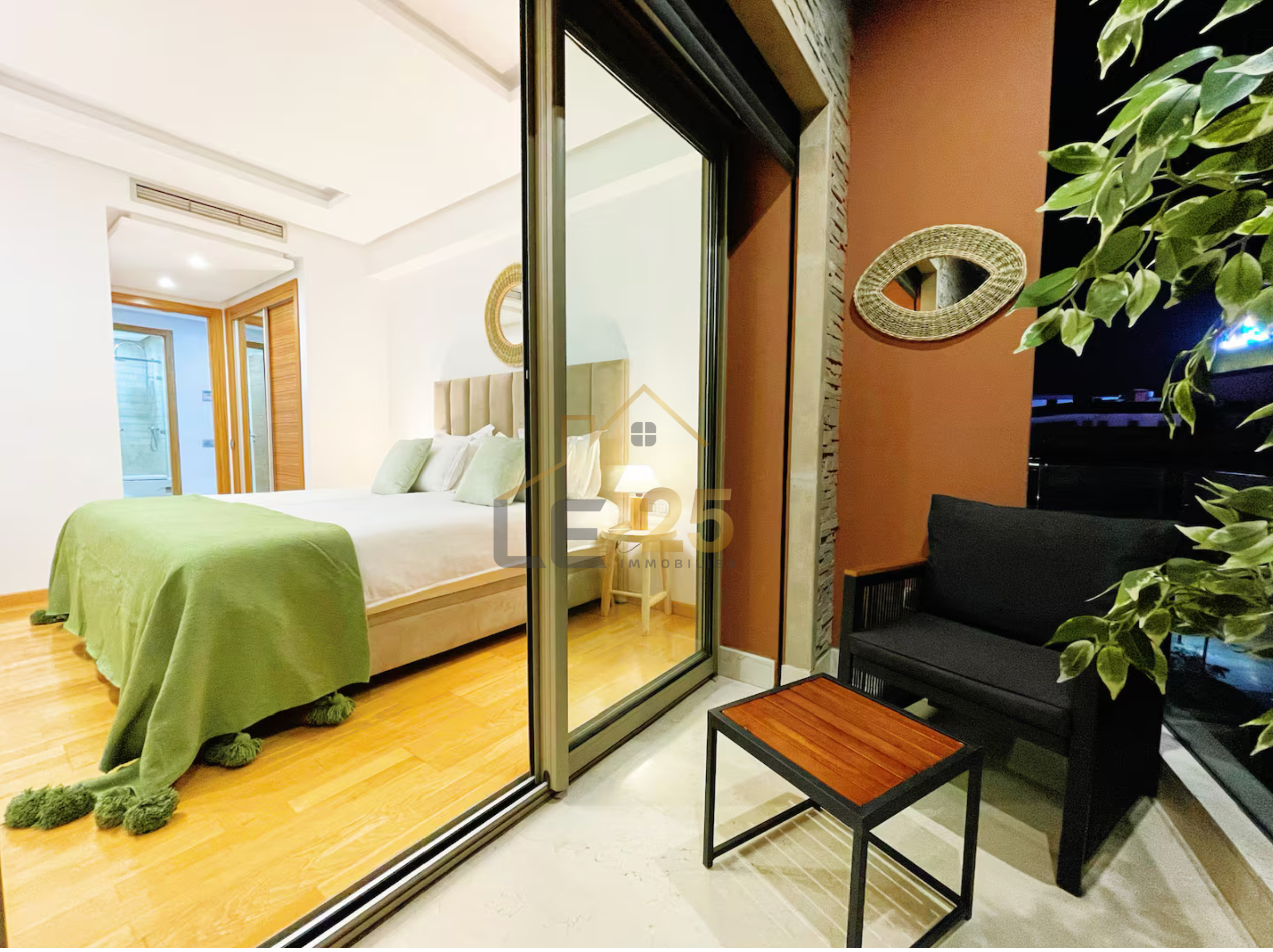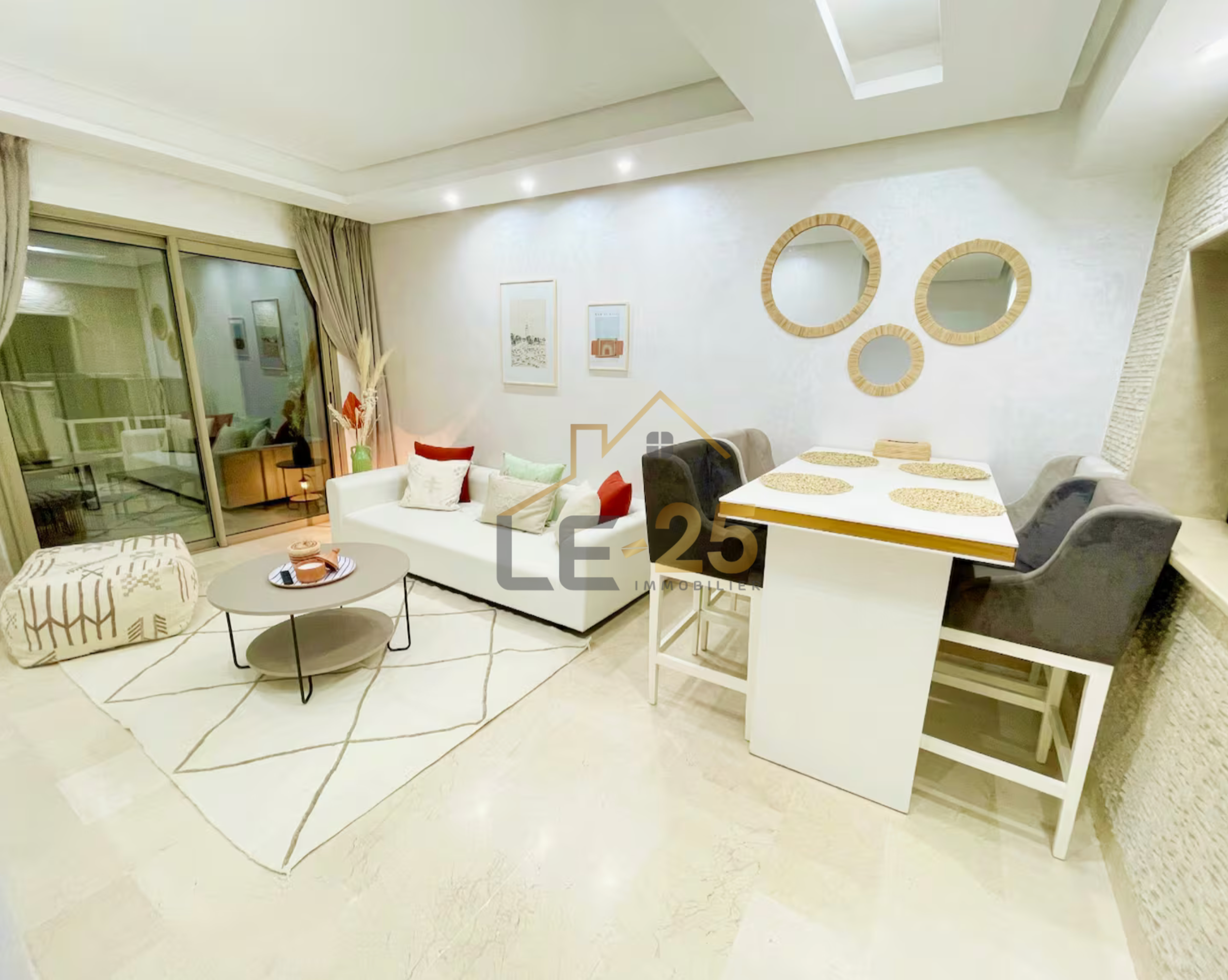 Le 25 IMMOBILIER vous propose à la location ce superbe appartement meublé, idéalement situé au cœur de Guéliz, à proximité immédiate de toutes les commodités.