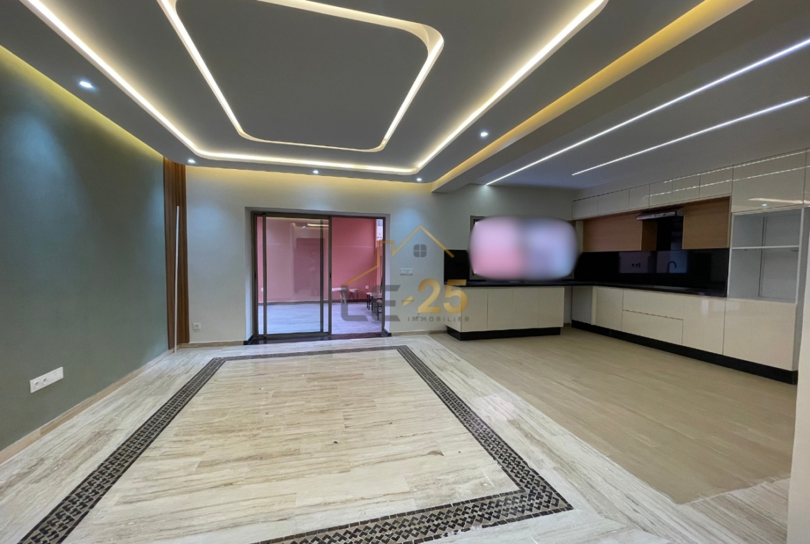 Le 25 Immobilier vous propose un superbe appartement à vendre sur le grand boulevard Abdelkarim Al Khattabi, bénéficiant d’un emplacement privilégié à proximité de McDonald’s Route de Safi et de nombreux restaurants. D’une surface de 119 m², avec une terrasse spacieuse de 28 m², il offre un cadre de vie agréable et fonctionnel. L’appartement comprend deux chambres avec rangements intégrés, une salle de bain entièrement refaite, un salon spacieux baigné de lumière, une cuisine moderne ouverte, ainsi qu’un espace de rangement fermé très pratique. Situé dans une résidence bien entretenue avec piscine, ce bien est récemment rénové avec soin et élégance. Une opportunité idéale pour y vivre ou investir dans l’un des quartiers les plus dynamiques de la ville.