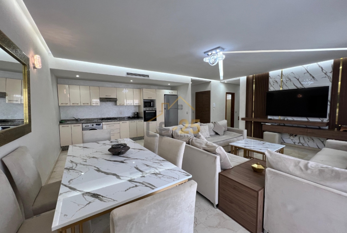 Le 25 Immobilier vous propose à la vente un splendide appartement haut standing de 112 m², dont 22 m² de terrasse, situé sur la Route de Casa dans une résidence sécurisée avec piscine.