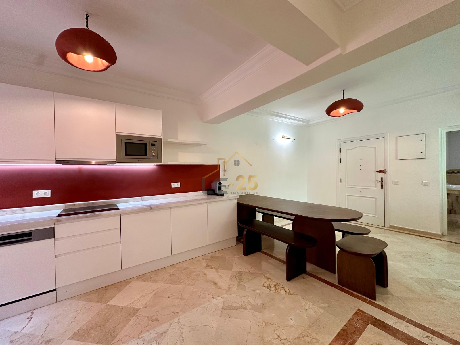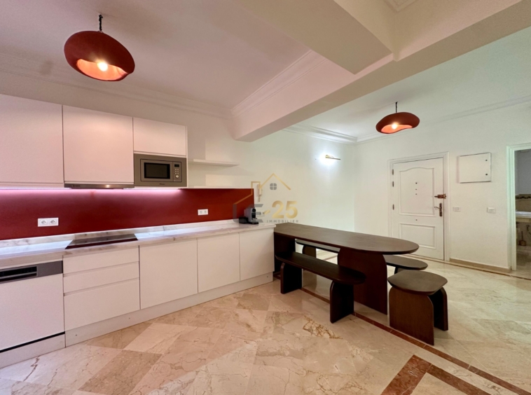 L’appartement se compose de deux grandes chambres, d’un salon lumineux et accueillant, ainsi que de deux salles de bain, offrant un excellent confort de vie au quotidien. Il dispose également d’une cuisine entièrement équipée, pensée pour répondre à tous les besoins pratiques avec des équipements modernes et de qualité.