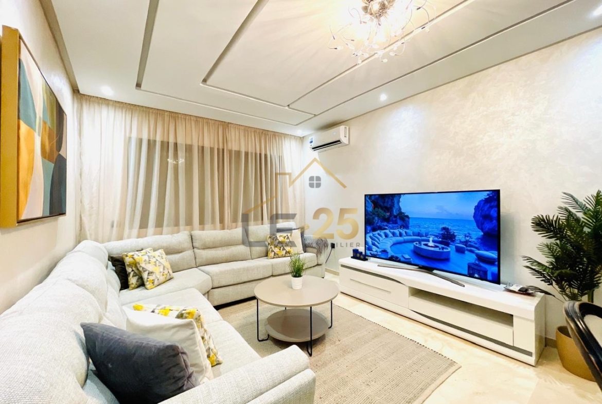 Le 25 Immobilier vous propose ce superbe appartement meublé de haut standing, situé dans une résidence fermée calme et prisé de Marrakech. Ce bien rare allie confort, raffinement et sécurité dans un cadre agréable avec piscine.