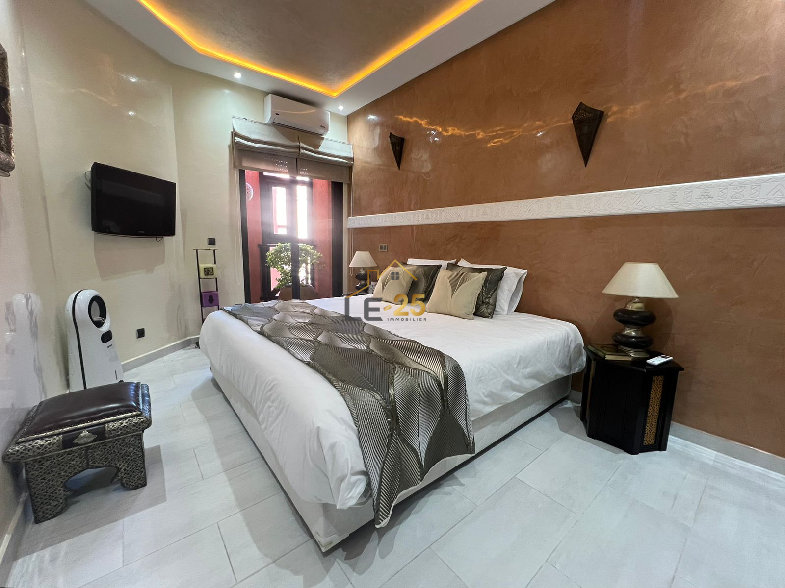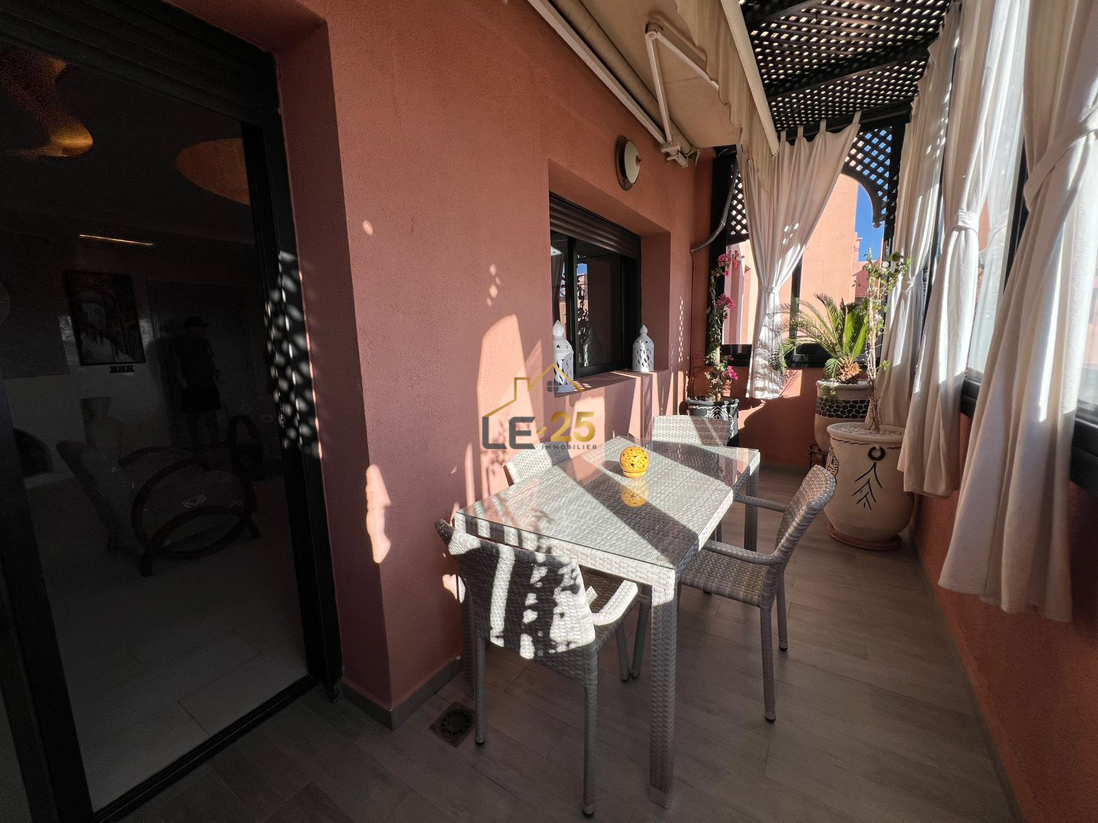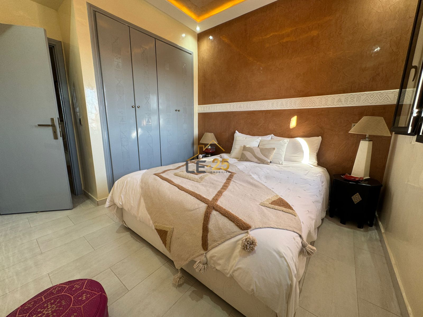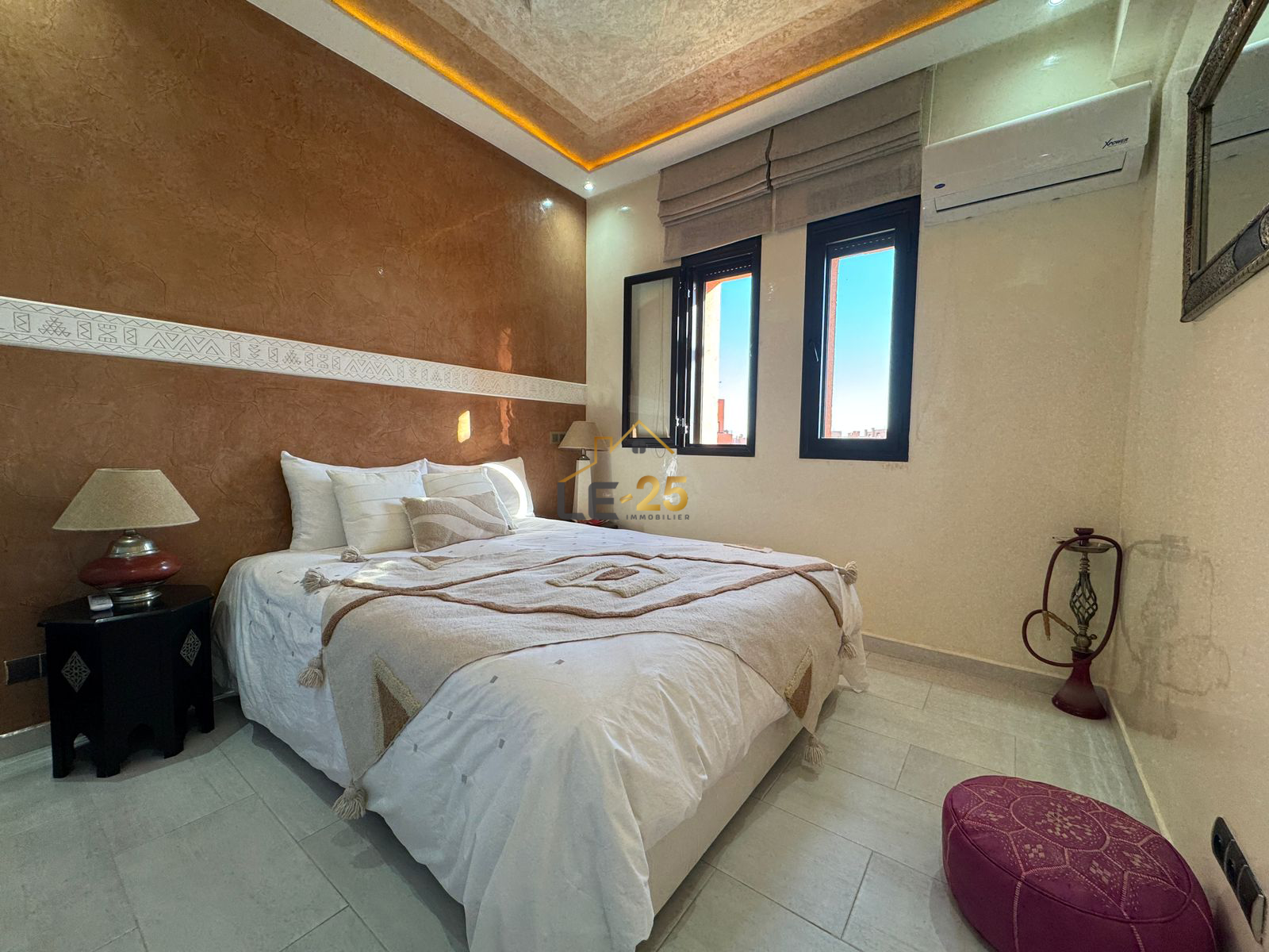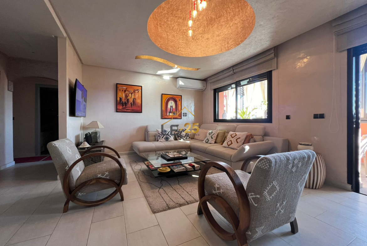 Le 25 Immobilier vous présente ce superbe appartement meublé de 86 m², situé au sein d’une résidence fermée et sécurisée à la Palmeraie, offrant un cadre de vie agréable, verdoyant et moderne.
