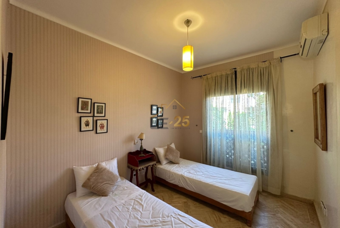 Le 25 Immobilier vous propose à la vente un superbe appartement meublé de 165 m², situé au sein d’une vaste résidence fermée, parfaitement entretenue et dotée d’une sécurité optimale. Vous y découvrirez un cadre de vie exceptionnel avec de grands espaces verts, trois piscines, un espace de jeux pour enfants ainsi qu’un terrain de basket-foot.