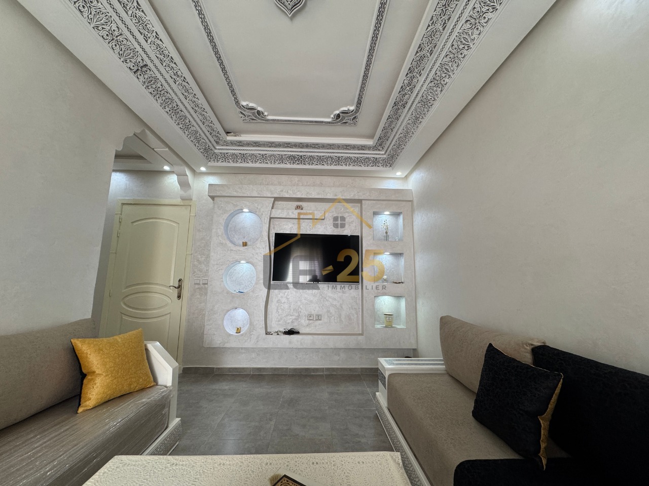 Le 25 Immobilier vous présente un charmant appartement meublé de 55 m² situé au 4ème étage dans le quartier prisé de Mabrouka à louer. Cet espace lumineux comprend deux chambres confortables, ainsi qu’un salon spacieux idéal pour se détendre.