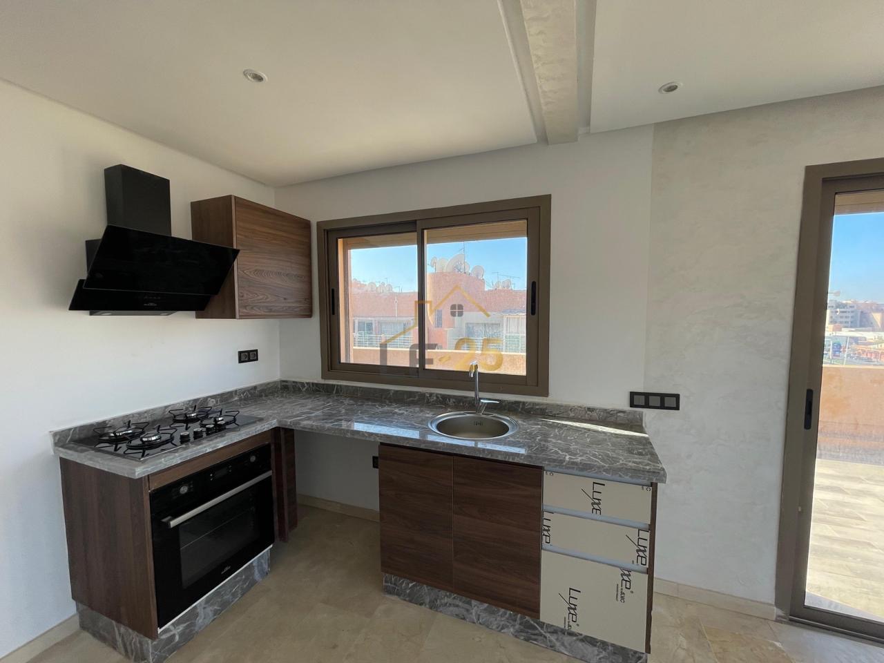 Il se compose d’une chambre avec placard intégré, d’une salle de bain, ainsi que d’une cuisine américaine ouverte sur un salon lumineux. Vous profiterez également d’une grande terrasse traversante, accessible depuis le salon et la chambre — un véritable atout pour profiter du climat de Marrakech.