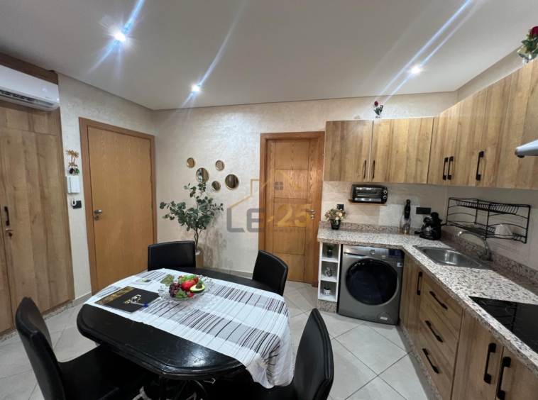 L’appartement se compose d’une chambre confortable, d’un séjour lumineux, d’une cuisine bien équipée, d’une salle de bain fonctionnelle, d’un grand placard de rangement intégré ainsi que d’un agréable balcon aménagé avec une table pour profiter de moments de détente en extérieur.