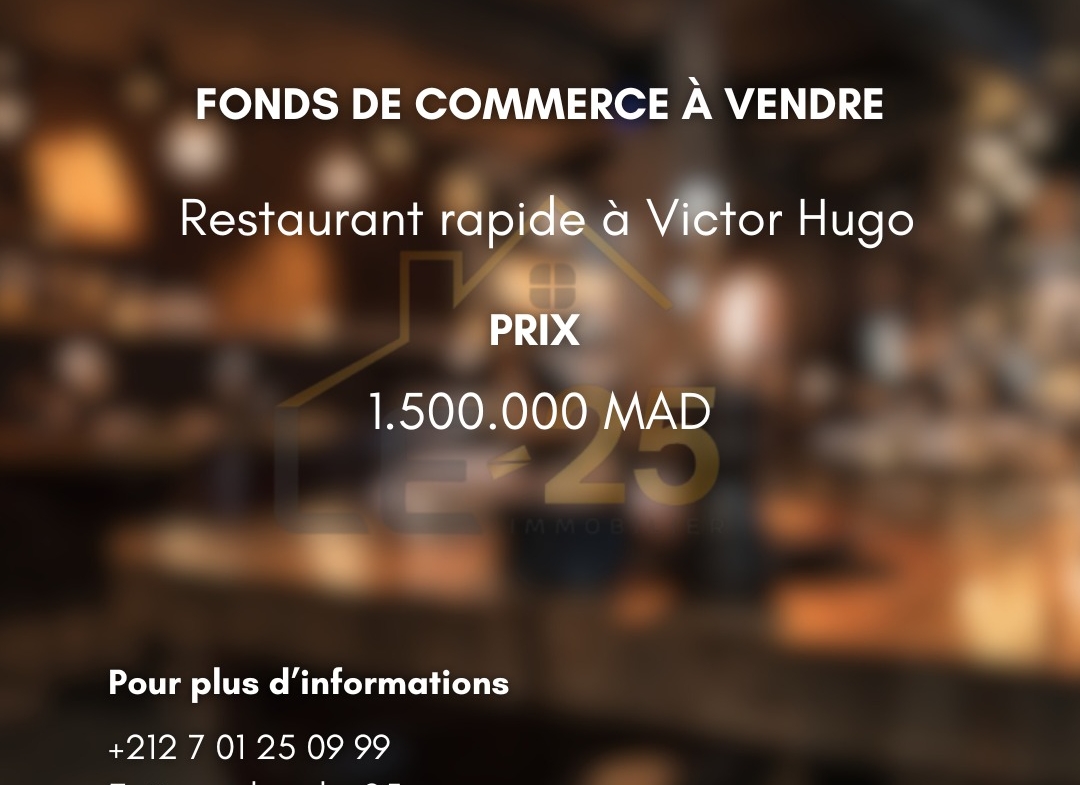 Le 25 Immobilier vous propose un fonds de commerce de restauration rapide à vendre, idéalement placé entre Victor Hugo et Guéliz.