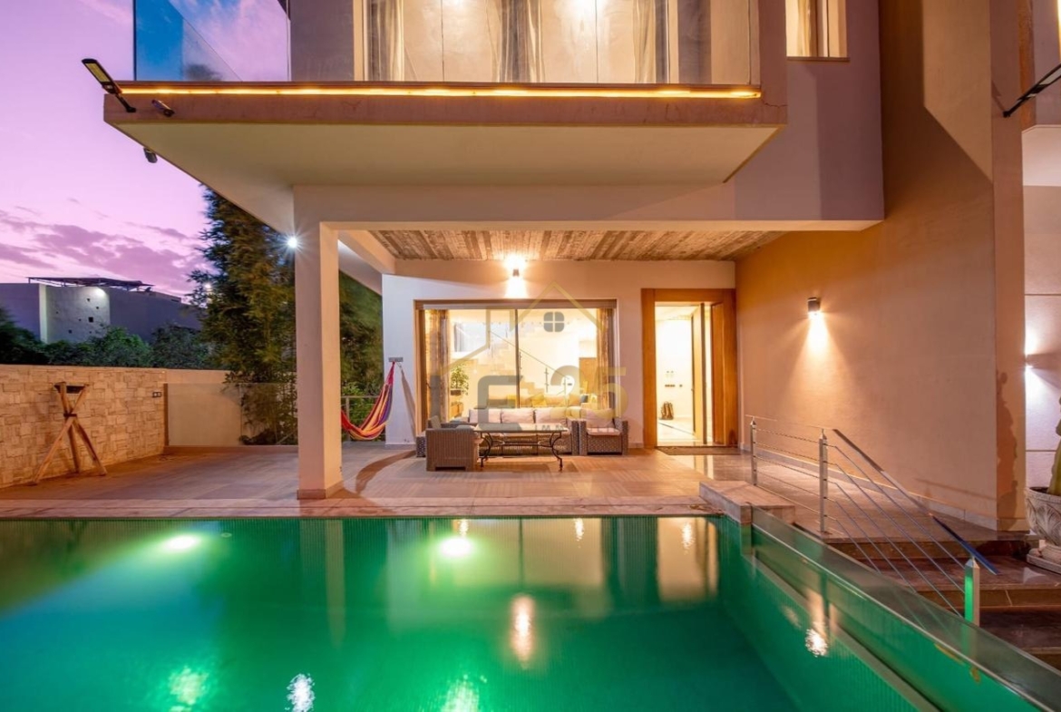 La villa est meublée avec des tissus italiens haut de gamme, garantissant une ambiance chic et moderne. Un garage pour 4 voitures avec un portail électrique télécommandé et la ligne fibre optique haut débit complètent ce bien d’exception.