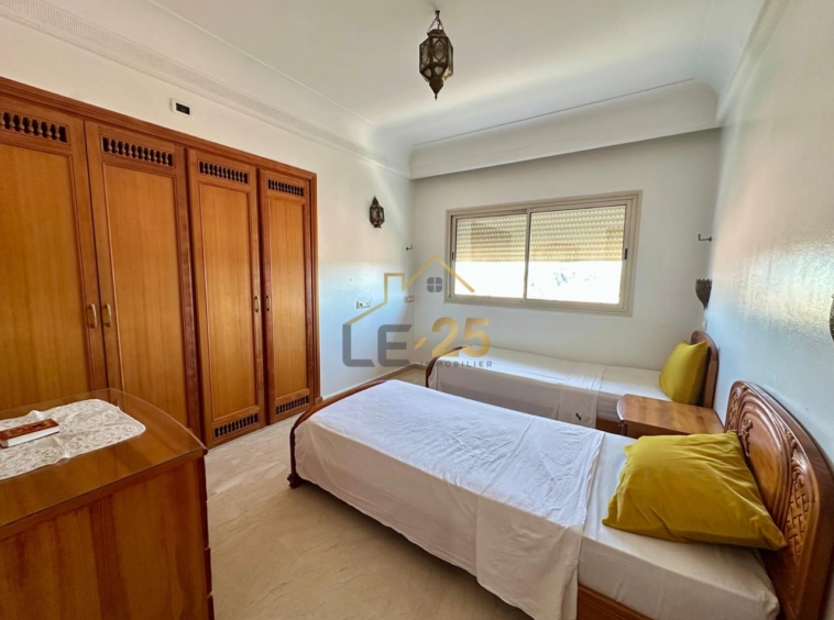 Le 25 Immobilier vous propose à la location ce superbe appartement spacieux et lumineux de 141 m², idéalement situé dans le prestigieux quartier de l’Hivernage. Niché au sein d’une résidence sécurisée avec piscine, parfaitement entretenue, il offre un cadre de vie élégant et paisible au cœur de Marrakech.