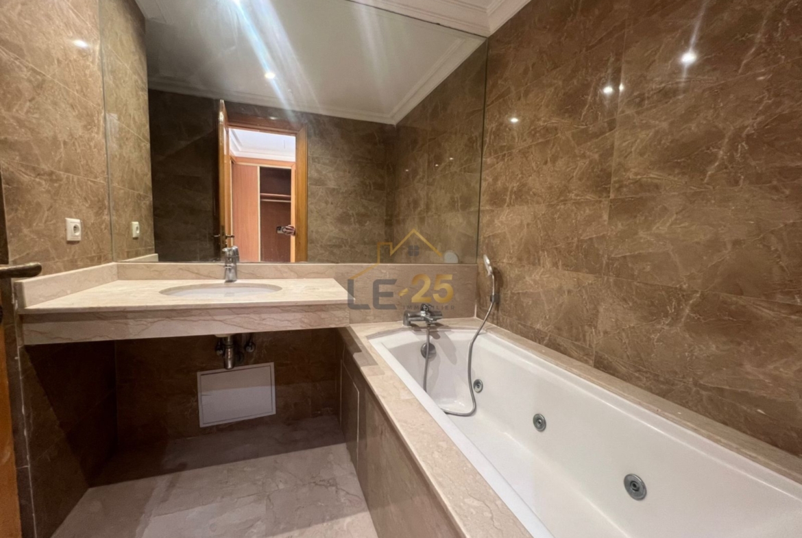 Le sol en marbre apporte élégance et raffinement à l’ensemble. La résidence sécurisée offre un environnement calme et agréable, avec toutes les commodités à proximité.