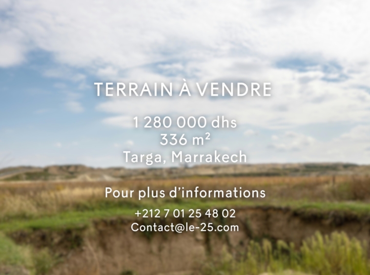 Le 25 Immobilier vous propose à la vente un terrain de 336 m² situé dans une zone de villas à Targa, l’un des quartiers les plus prisés de Marrakech.
