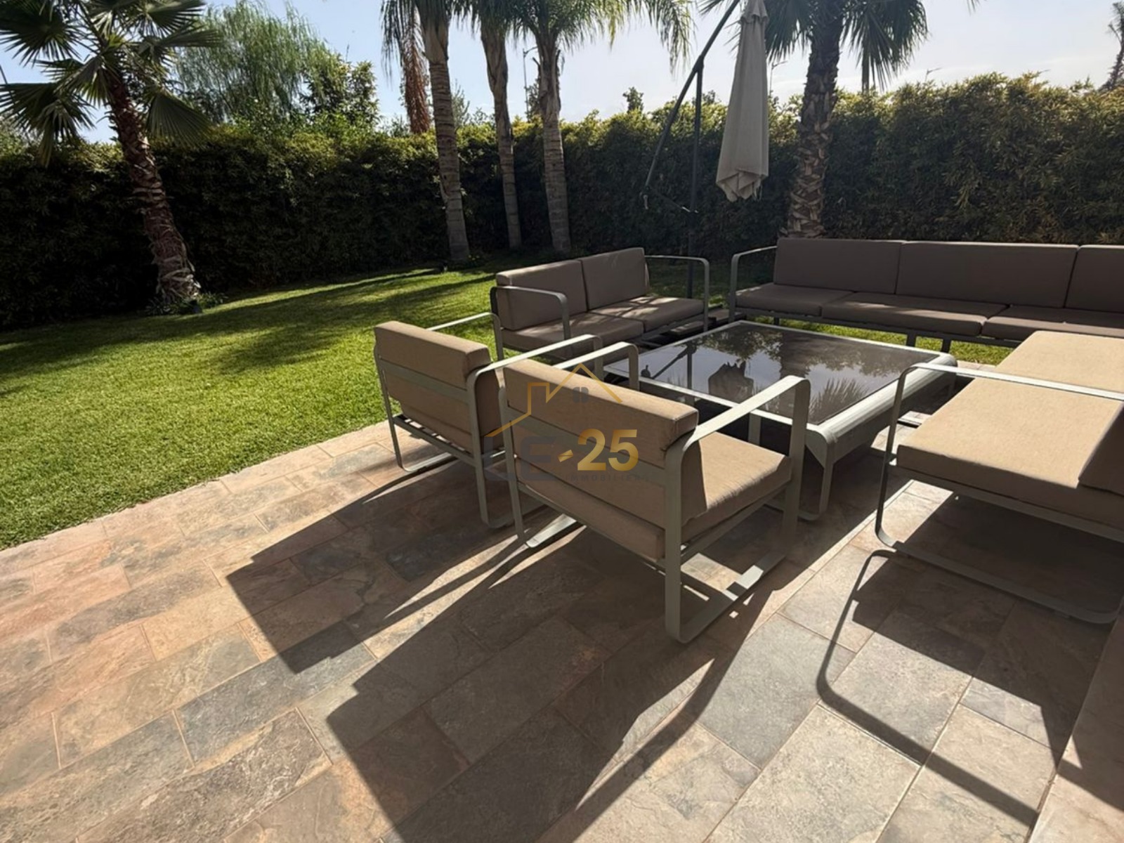 Le 25 Immobilier vous présente une propriété exceptionnelle située sur la route d’Ourika, alliant luxe, confort et tranquillité. Édifiée sur un terrain de 600 m² offrant un superbe espace extérieur, cette villa moderne et spacieuse propose une surface habitable de 400 m², pensée pour un cadre de vie élégant et raffiné.