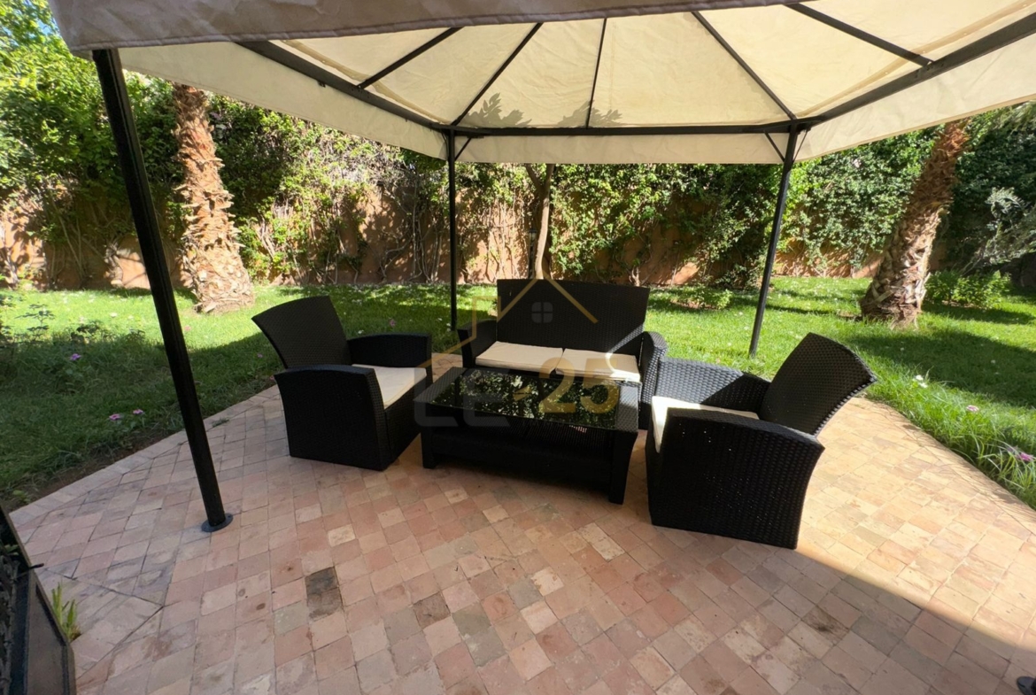 Le 25 Immobilier vous propose à la location une somptueuse villa meublée de 240 m², située dans une résidence sécurisée avec piscine à Targa, l’un des quartiers les plus prisés.