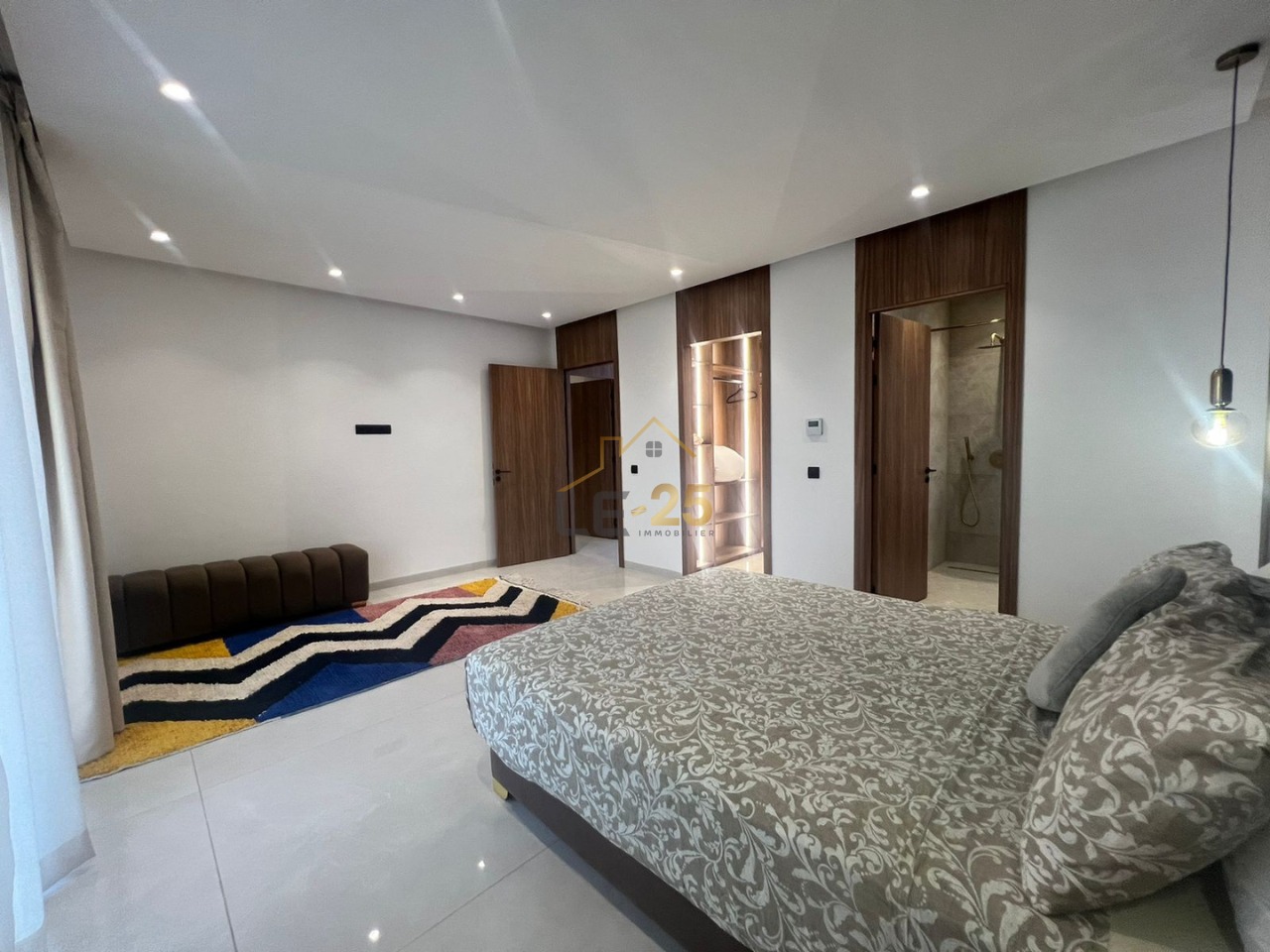 À l’étage, la villa propose une suite parentale sophistiquée avec salle de bain, dressing et terrasse privée, offrant un espace de détente intime avec une vue imprenable sur les oliviers. Trois autres chambres, chacune avec dressing et terrasse, accueillent famille ou invités, accompagnées de deux salles de bain supplémentaires pour plus de confort. Un hammam belli traditionnel vient renforcer le bien-être de ses occupants.