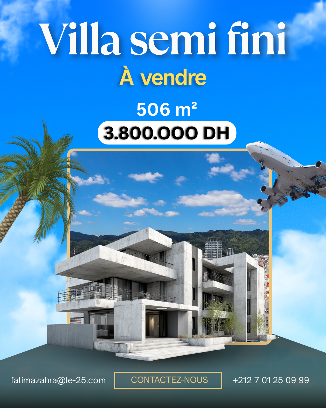 Le 25 Immobilier vous propose une villa semi-finie édifiée sur un terrain de 506 m², située à Abwab Marrakech.