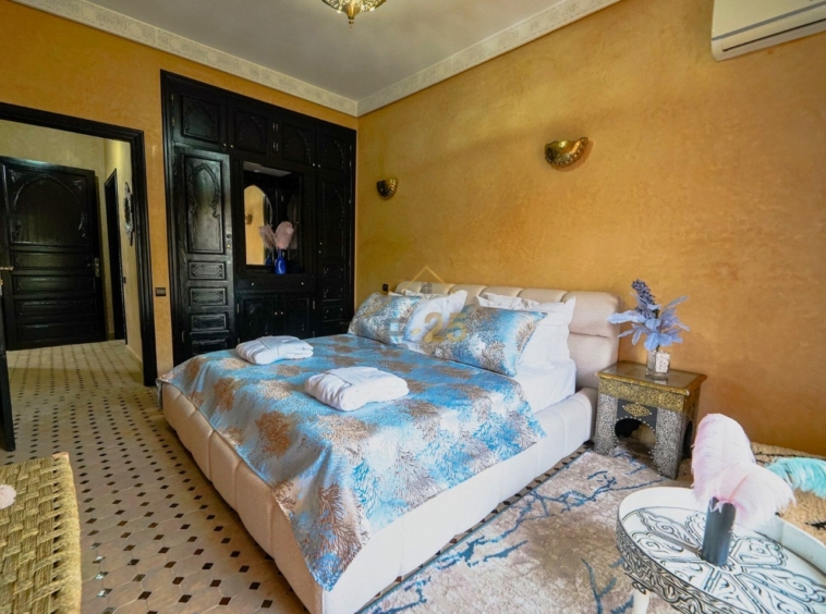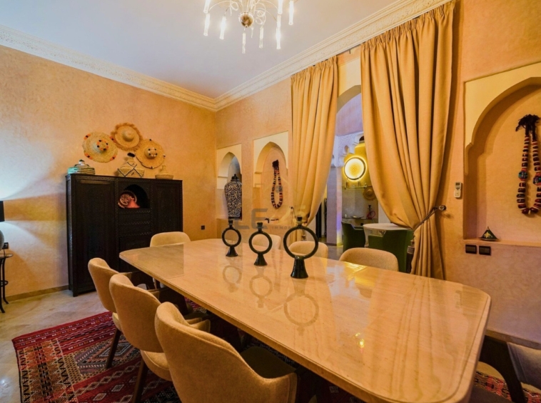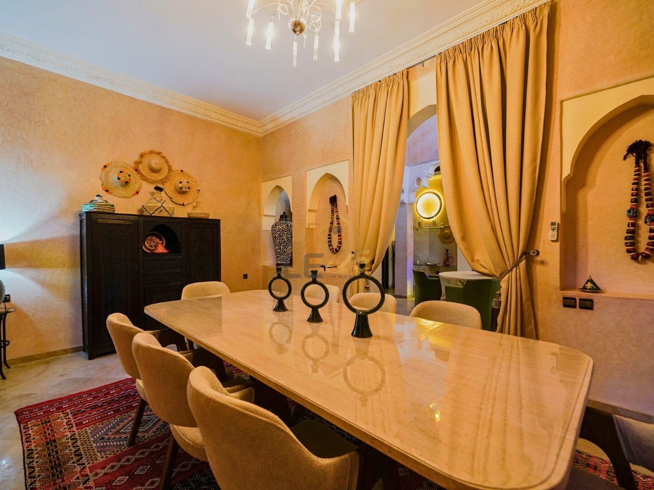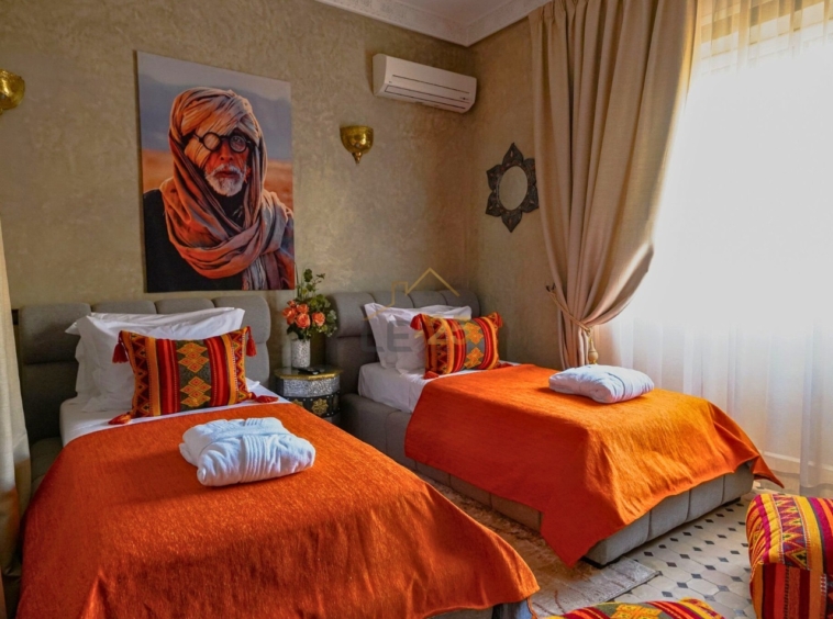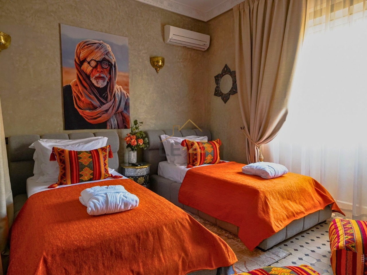 Alliant authenticité et confort moderne, cette propriété séduit par son architecture traditionnelle marocaine, ses finitions raffinées et ses espaces généreux. Elle se compose de 4 suites élégantes, chacune pensée pour offrir confort et intimité.
